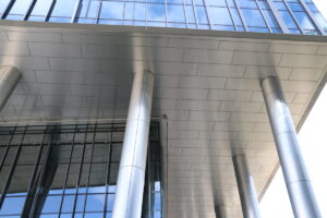 Project “VERDE” – Riga, LATVIA. The metal cladding of the columns and ceilings of the office building B was performed using the innovative SIMPLEX cladding system.