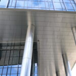 Projekts “VERDE” – Rīga, Latvija. Biroja B ēkas kolonnu un griestu metāla apšuvums izpildīts izmantojot inovatīvu SIMPLEX apšuvuma sistēmu.